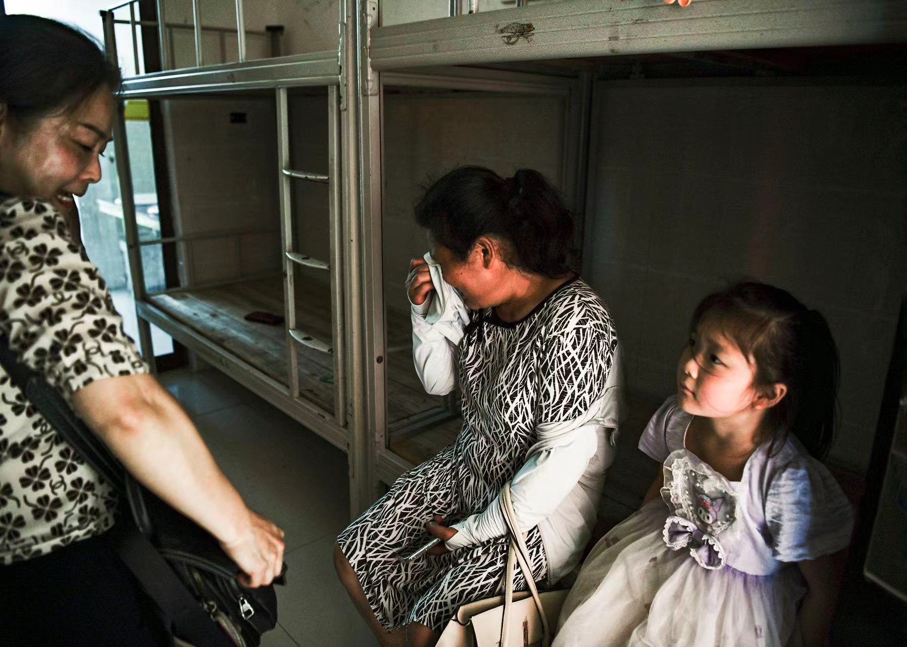 村里很快来人催转移到堤坝上去,我头脑一片空白,不知道该拿些什么,孩子都在外面打工,家里只有我带着两个六七岁的孙子,只记得当时我走路脚发软,后来回过神才看到,我慌里慌张地提了个袋子出来,装了孙子的几本书。当时水到了脚踝,我带着两个孙子跟着大家往堤坝上跑。村子里平时几乎没有年轻人,大家都在外面打工,只有老人带着小孩在村里住,家里根本没有劳动力去转移屋里的东西。