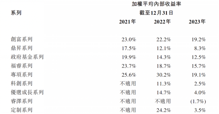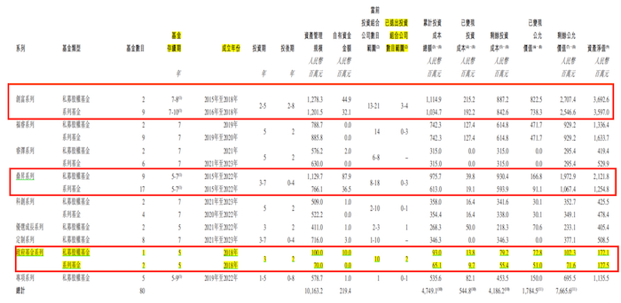 据招股书披露,包括创富系列、福睿系列、鼎晟系列在内的私募股权基金,其资产管理规模均已达到千万级。这些基金中,创富系列基金成立于2015至2018年间,基金存续期为7至8年,自2022年起陆续进入到期期限,当前投资组合公司数量在13至21家之间,但已退出的投资组合公司数量相对较少,仅为3至4家。
