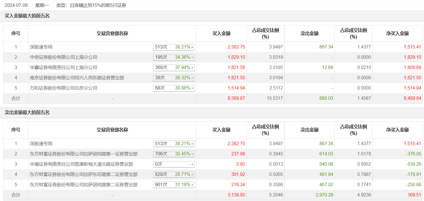 富满微7月8日20CM涨停,成交额6.03亿元,换手率10.12%,盘后龙虎榜数据显示,深股通专用席位买入2382.75万元并卖出867.34万元。