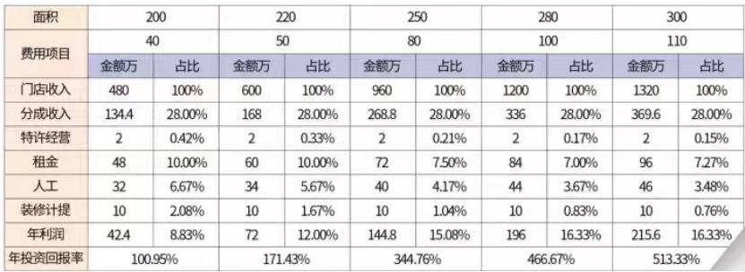 据嗨特购招商加盟负责人提供的资料显示,加盟商享有28%的销售分成。对于250平方米的门店进行经营假设,以分成收入268.8万减去租金、人工、特许经营和装修等成本费用,预计可获得年利润为144.8万元,年投资回报率为344.76%。