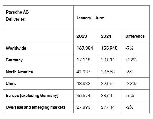 保时捷7月9日公布,保时捷上半年全球销量155945辆,上年同期为167354辆,同比减少7%,其中在中国市场的销量为29551辆,较上年同期的43832辆减少33%。