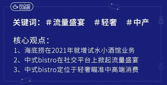 但这似乎并不妨碍加了bistro标签的中式小酒馆不仅成为“流量密码”“社交货币”,还成为“中产的专属酒馆”。中式bistro,摇身一变成为“轻奢”餐饮品类赛道上的一匹“黑马”,在社交平台上掀起一波流量盛宴。