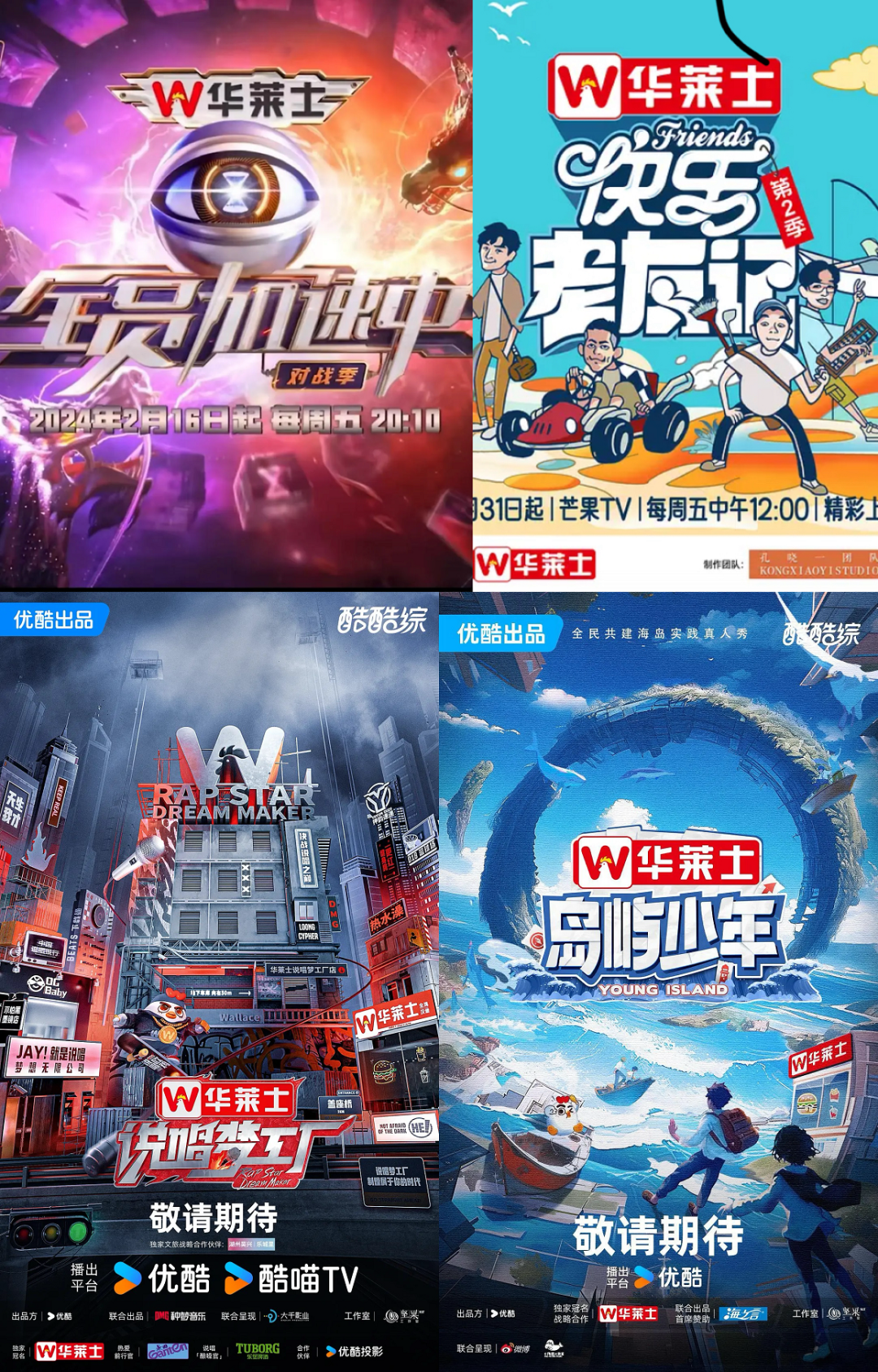 不过,相比传统大金主投放热情的降温,今年强势押宝综艺投放的新兴品牌也有不少。譬如过往并不感冒综艺的华莱士,上半年依次冠名了芒果的《全员加速中2024》《快乐老友记第二季》与优酷的《说唱梦工厂》《岛屿少年》,综艺里一群人围吃华莱士炸鸡的画面成了上半年综艺市场一大靓丽风景。