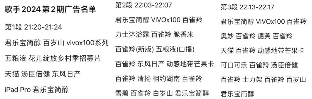 《歌手2024》这样的项目自不用多说,作为行业公认的“全民爆款”,这档久违了的出圈力作不仅提振了综艺市场的整体信心,还在招商“实绩”上做出了从第二期就被天猫、东风日产等14家品牌疯狂追投的好学生表率。