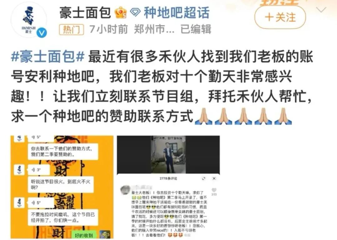 今年上半年,像《快乐老友记第二季》就是借再就业男团粉丝在社媒上积极“营业”喊话品牌方而最终揽下总计7家品牌;以26个总植入品牌强势领跑上半年网综招商的《种地吧第二季》,则令全行业见识了“事业粉”禾伙人为哥哥卖命搞钱积攒出的商业能量。