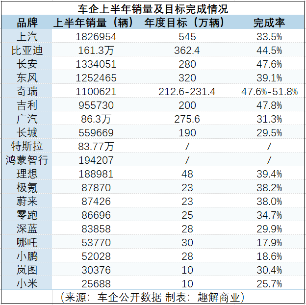 其中,比亚迪、奇瑞、理想、问界等一众车企都交出一份喜报,市场成绩均迎来正增长;与此同时,还有部分车企的年度销量目标完成率未及50%,甚至仅完成两至三成,和年度目标相去甚远。