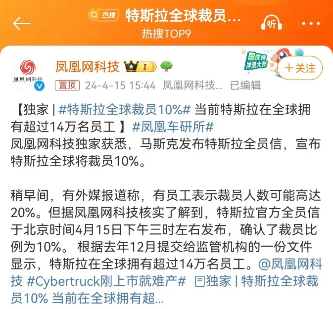 值得一提的是,今年4月,特斯拉CEO埃隆·马斯克在致员工的内部电子邮件中表示,该公司将裁减超过10%的全球员工,以削减成本并提高生产率;这意味着至少1.4万名员工的离开,是目前已知的车企“裁员之最”,一度引起舆论哗然。