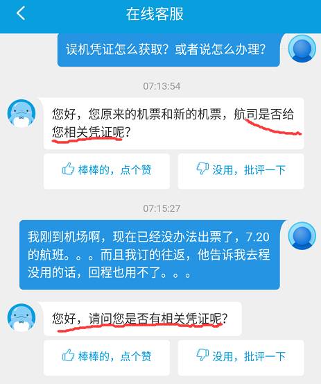 客服表示需要我提供误机凭证,然后开始了复读机模式。。。