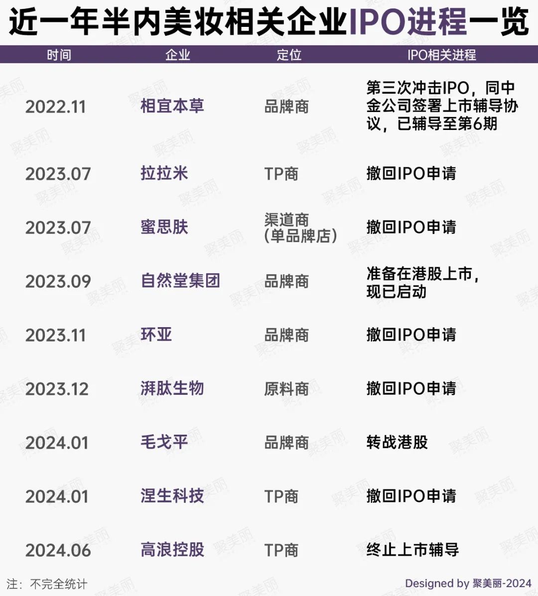 IPO终止的消息不断,从2023年的环亚科技、蜜思肤等企业撤回申请,还有原料商和TP商也暂停IPO进程。
