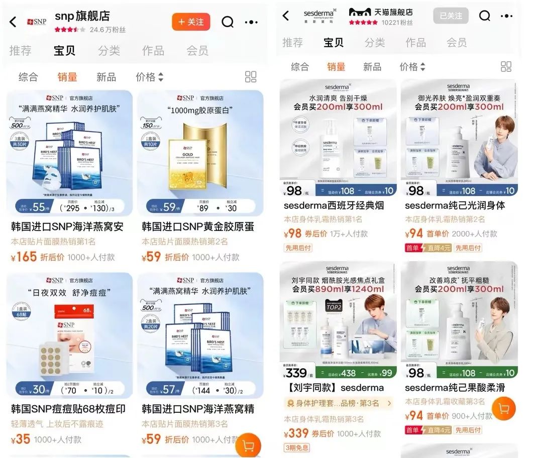 以及此前高浪控股打造的两年不到便年销数亿的护肤品牌Sesderma,现天猫旗舰店粉丝仅1万多,除明星单品外,其余产品月销在100-2000之间。