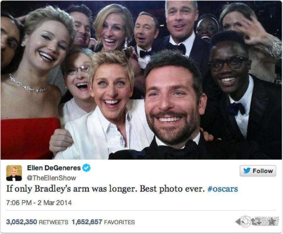 2014年,艾伦的那张集齐了奥斯卡影帝影后的自拍照在Twitter上获得了340万次转发,并给上届奥斯卡颁奖礼带来了近14年以来的最佳收视业绩,观众总数达到了4500万。