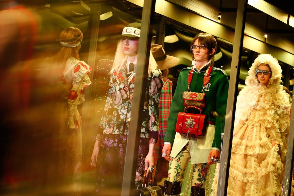 Gucci刚刚在米兰时装周上发布了它的2017秋冬系列,用眼花缭乱和目不暇接来形容毫不为过。创意总监Alessandro Michele把他繁复的设计美学再次上了一个等级,模特儿身上可以背着三个包包,一身造型上的颜色可以多达七八种。