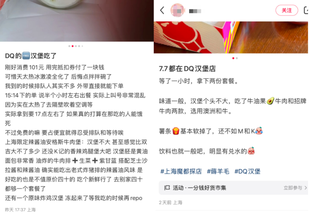 除了高价,DQ汉堡店首批产品也并未给消费者带来更为卓越的食材品质和别具一格的口味体验。社交媒体平台上不乏消费者吐槽:DQ汉堡分量较小、味道一般,并不符合其售价,小吃和饮料味道也令人失望。