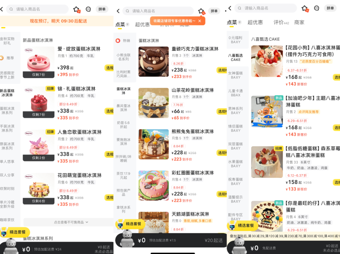 图:哈根达斯、DQ、八喜冰淇淋蛋糕价格(从左到右)
