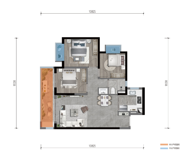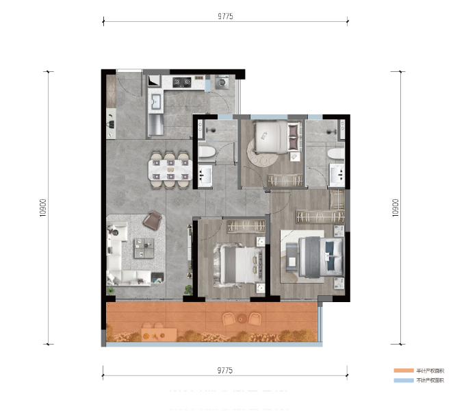 建面约106㎡的户型,三室两厅两卫,超90%的得房率,绝对是年度爆款户型。