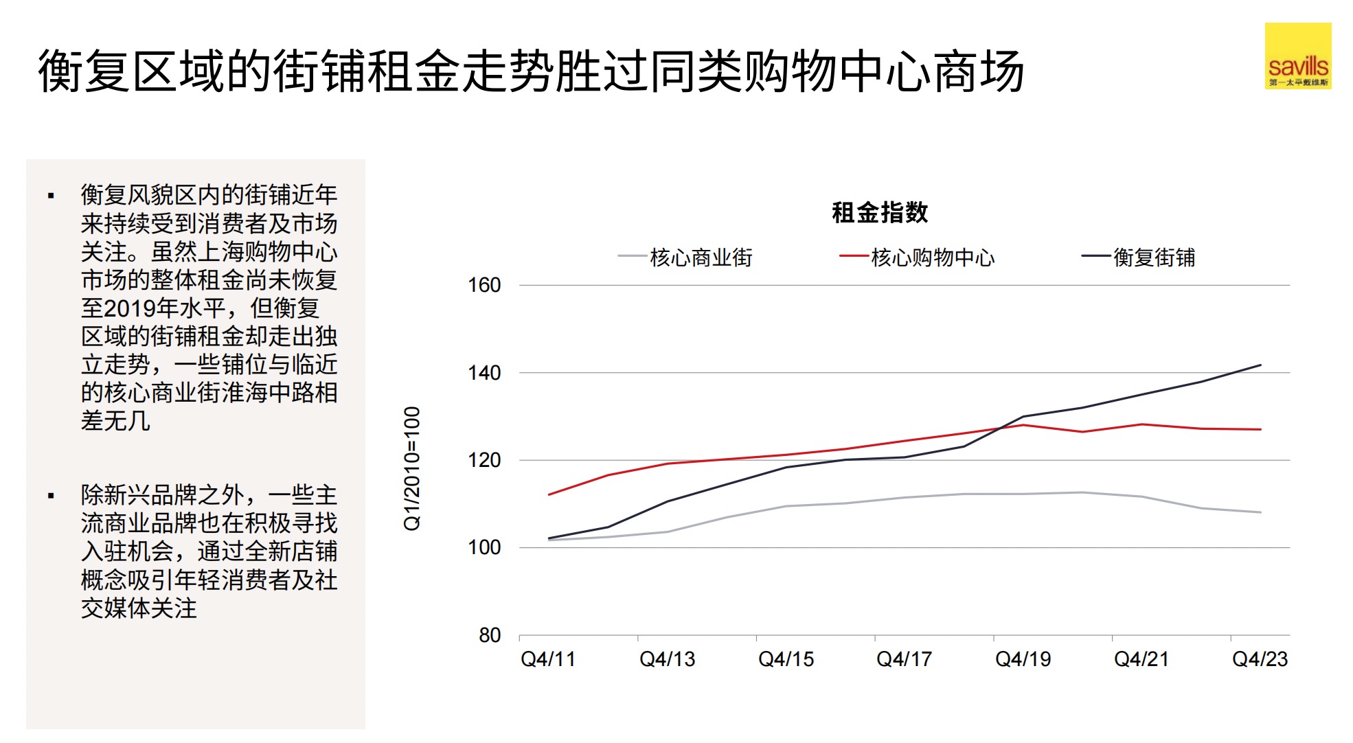 衡复风貌区走出了独立行情,街铺租金走势胜过同类购物中心商场。