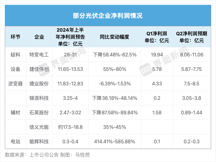 设备商也是今年上半年光伏行业利润赢家。捷佳伟创(300724.SZ)预计上半年净利超11亿,同比增长率达到55%-80%。该公司称,报告期内,公司订单持续验收带来收入增长。