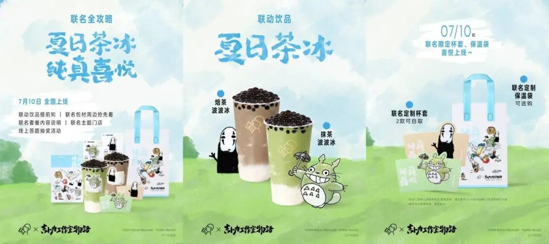 近日,喜茶联动吉卜力工作室物语以一杯「夏日茶冰」走入盛夏,重新唤醒心底最真挚的那份纯真喜悦。此次联动将推出包括「焙茶波波冰」「抹茶波波冰」共 2 款新品,「焙茶波波冰」甄选浙江余姚高山绿茶,「抹茶波波冰」则甄选浙江抹茶,搭配首创芝芝与慢熬黑糖波波。