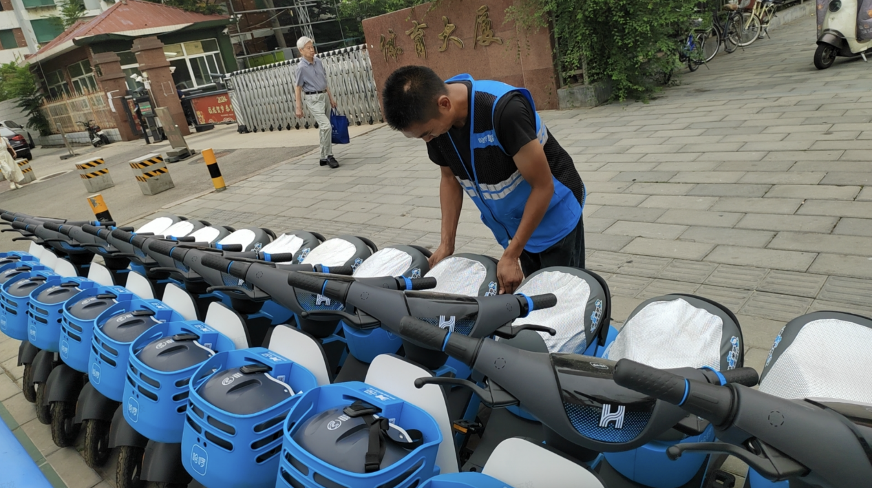 有同样同感受的市民不在少数,在体育大街地铁站外,一些骑行者发挥“聪明才智”力争改善骑行体验。有市民选择用随身携带的湿巾短暂为座椅降温,提升骑行体验感,还有一部分市民在车辆选择上下功夫,尽量选择树荫或者阴凉处的停放车辆,从而避免“烫屁股”的尴尬。而更多的市民在“刚性”骑行需求和骑行体验上,选择了前者。