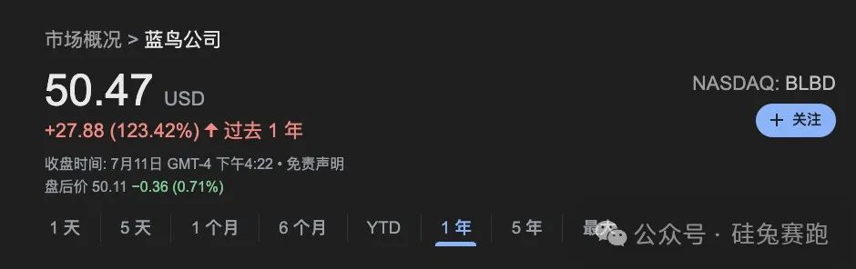 如果你去年这个时候all in特斯拉的股票,那么你将亏损11%。如果你当时买的是Blue Bird的股票,那么你现在正在计划退休。