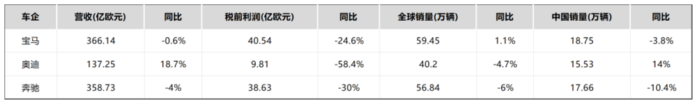 2024年Q1,除奥迪在华销量同比上涨14%外,奔驰、宝马在华销量持续下降。但奥迪销量增长却以牺牲利润为代价,奥迪同期利润暴跌超50%在BBA中跌幅最大。
