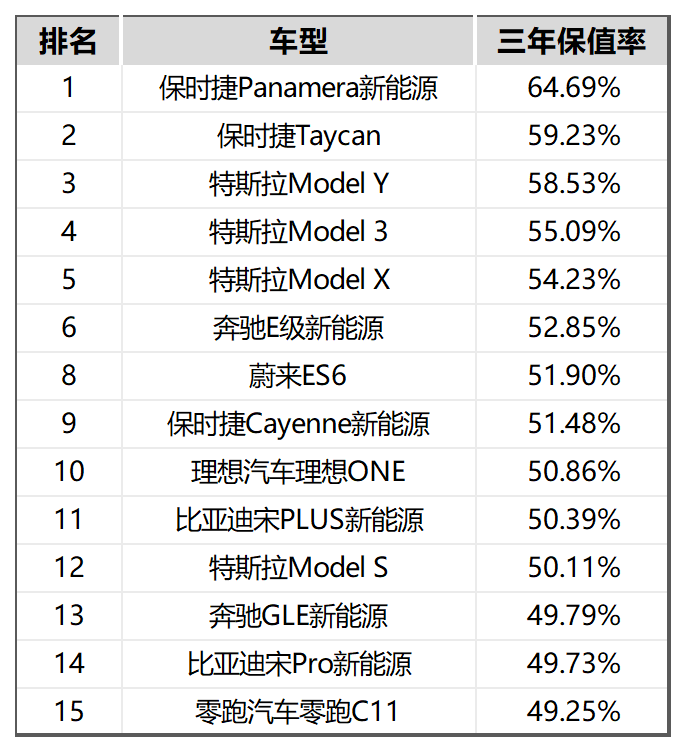 细分车企来看,除保时捷系列、特斯拉Model系列、蔚来ES6、理想ONE、比亚迪宋PLUS三年保值率大于50%外,其他新能源车型三年保值率不足50%,哪吒V系列三年保值率更是仅有37.21%。换言之,一辆含税落地价四五十万的新能源车,车主购置前需提前做好一年亏损超10万的准备。