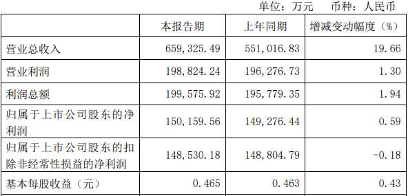 金钼股份7月12日晚间披露的2024年上半年业绩快报显示,报告期内,公司实现营业收入65.93亿元,同比上升19.66%;实现归属于上市公司股东的净利润15.02亿元,同比微升0.59%。