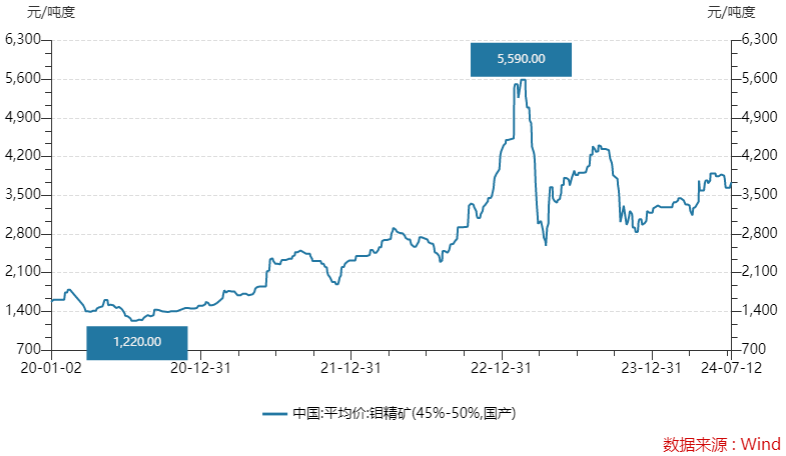 就2024年上半年来看,钼精矿(45%-50%)价格相对平稳,自3185元/吨涨至7月12日的3735元/吨,涨幅约17%。
