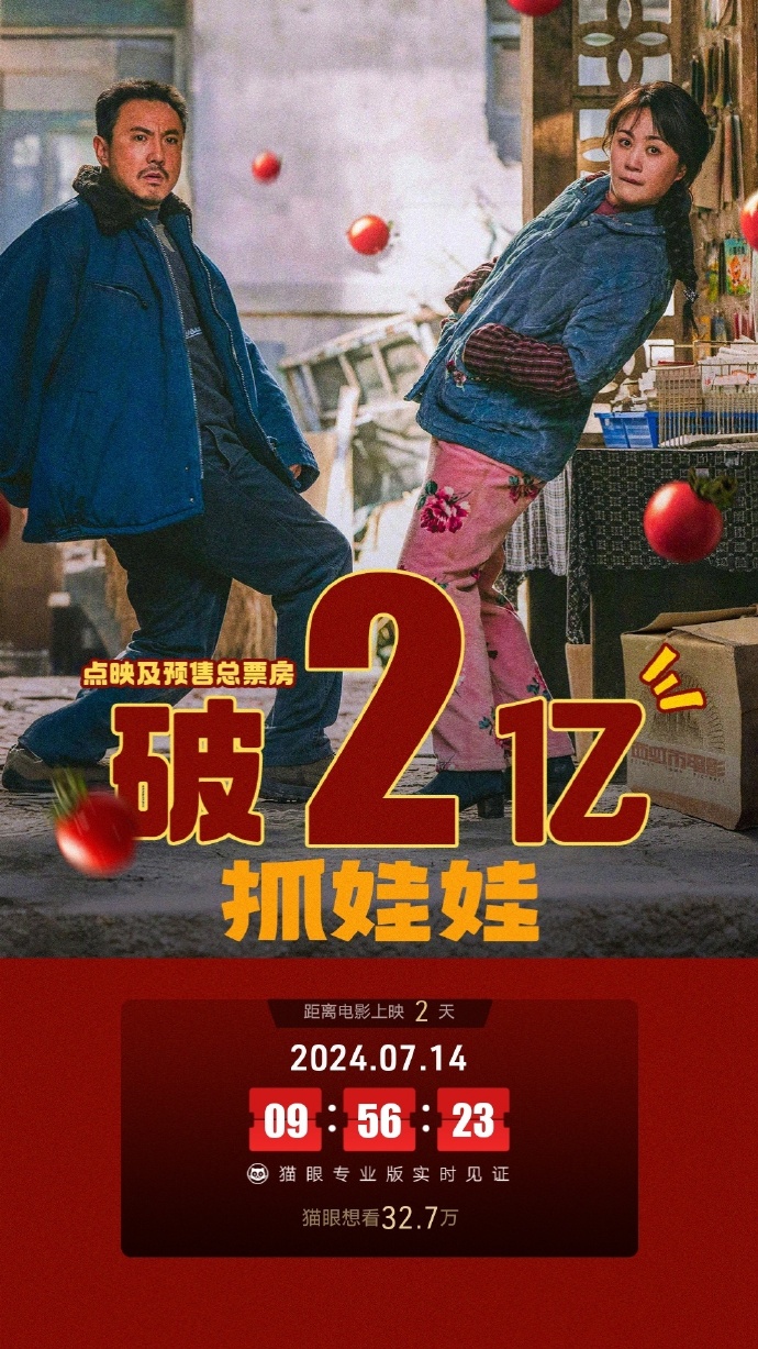 据猫眼专业版数据,电影《抓娃娃》映前2天,点映及预售总票房破2亿。