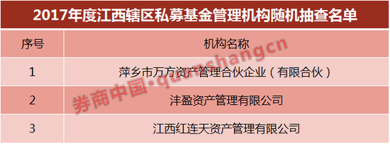 比如江西证监局,此次随机抽取的检查对象名录库包括辖区已发行产品的35家私募证券基金管理机构(数据截至2017年1月14日,剔除2016年已检查的11家机构)根据管理基金规模和合规风险从上述35家机构中进行分层抽取:一是基金规模类,基金规模1亿元(含)以上的抽取2家;二是合规风险类,员工人数20人(含)以上的抽取1家(不含持牌金融机构)。