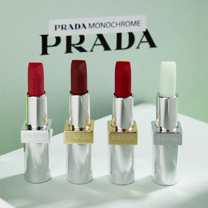 去年8月,Prada正式推出彩妆和护肤品系列,中国市场是其首发市场。光从其产品设计来看,就有着非常浓厚的Prada风格。例如Prada新品唇膏,不论是采用标准性金属外壳、顶端含三角形切口的外观设计,还是唇膏本身突出的棕色调及哑光质地,无不对应主品牌的美学思路。