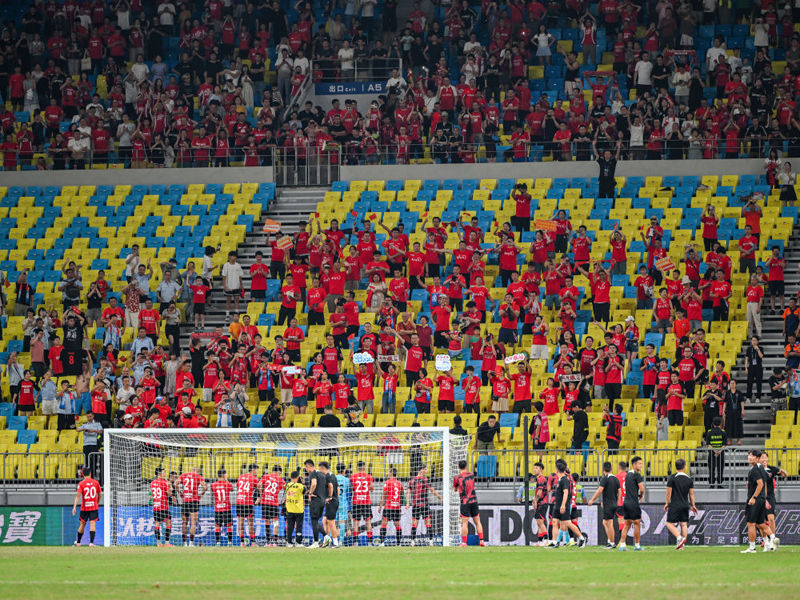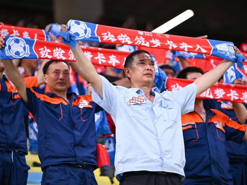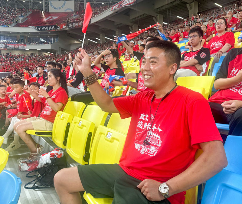 坐在球场南看台的最前排,徐宝林身着主队红色球衣手拿加油棒,左右两侧是自己的妻女。当同现场四万人共唱国歌,当和四周球迷一道为进球兴奋得手舞足蹈时,激动的眼泪,一直在这个34岁卡车司机的眼眶里打转。