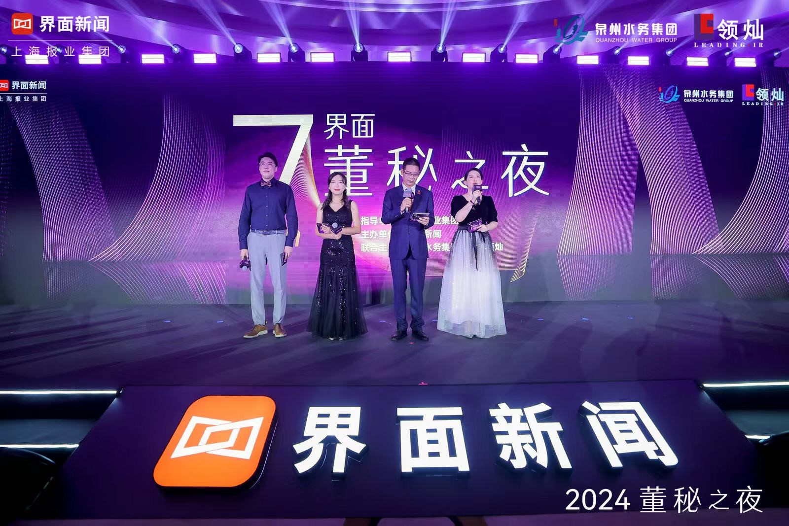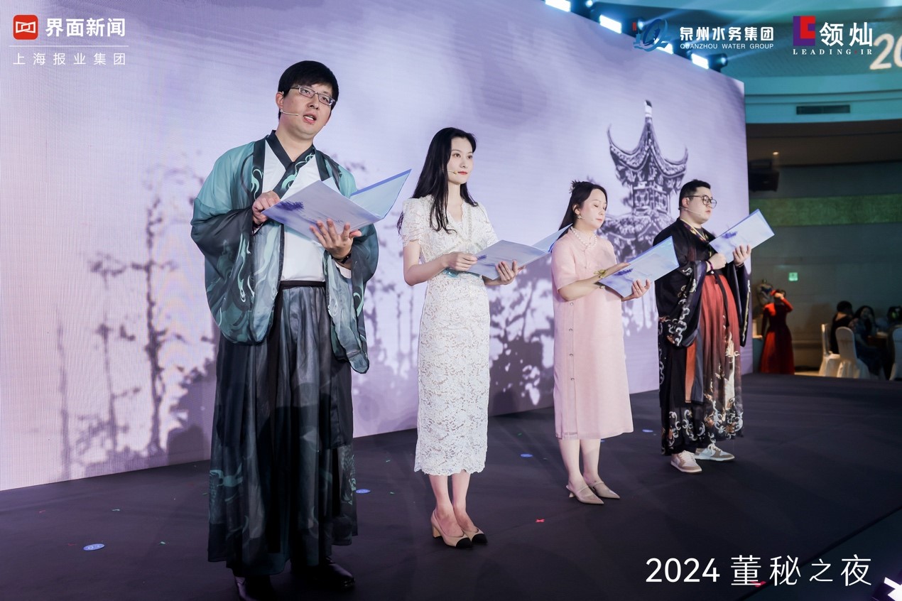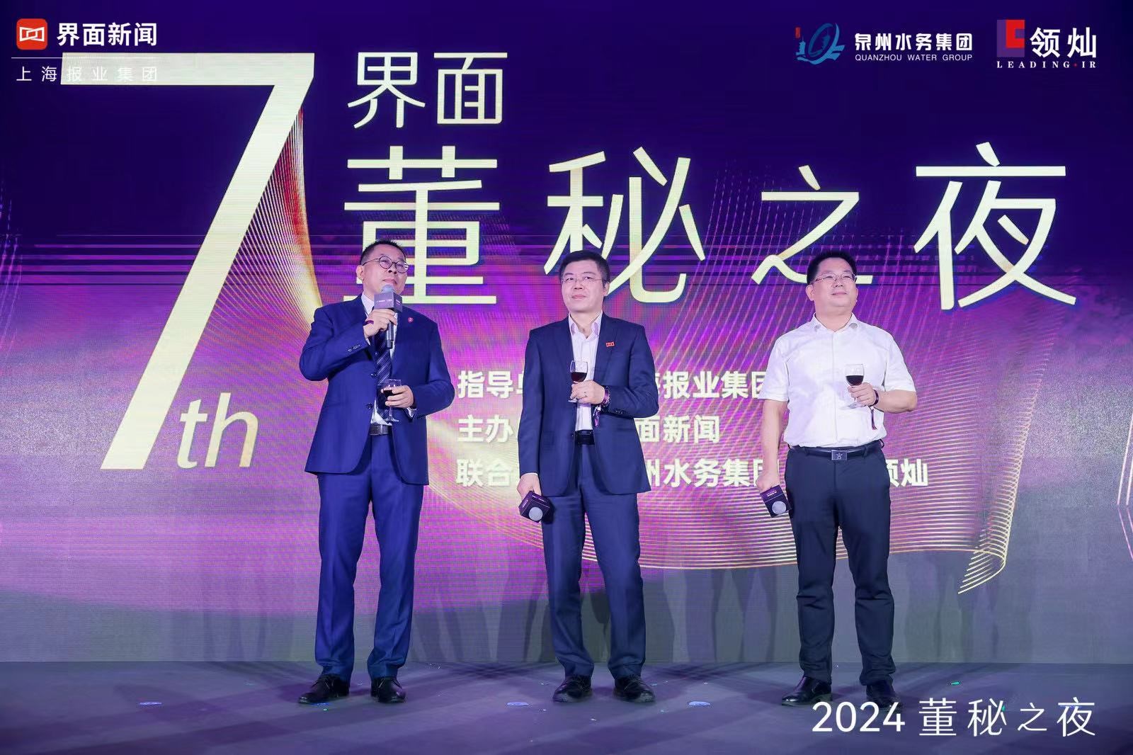 七月仲夏夜,由上海报业集团作为指导单位,界面新闻主办、泉州水务集团有限公司、上海领灿联合主办的【2024董秘之夜】于7月11日在泉州迎宾馆圆满落幕。在新质生产力的新辉里,资本市场焕发了新的活力和动力,上市公司高管及董秘们共探企业前行方向,在诗歌与夏夜晚风中笑谈这数十年的资本市场风云。