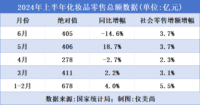 上半年化妆品零售总额创新高,但6月同比暴跌14.6%