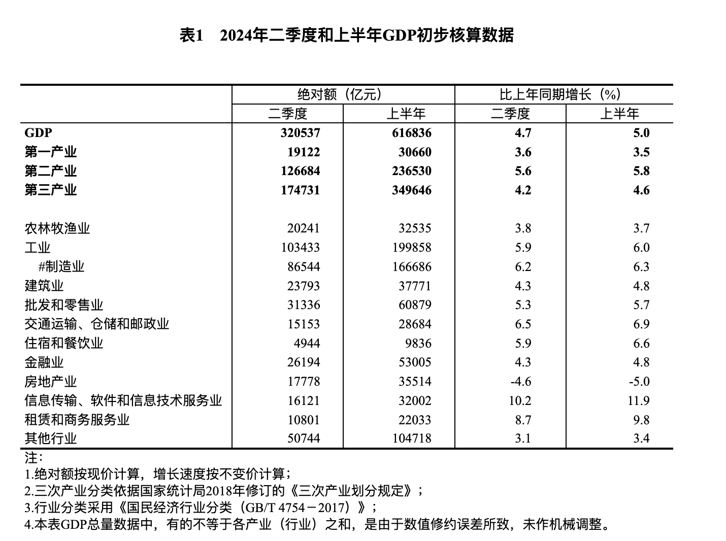 7月16日,国家统计局发布数据,经初步核算,2024年二季度我国金融业GDP同比增长4.3%;信息传输、软件和信息技术服务业GDP同比增长10.2%;房地产业GDP同比下降4.6%。