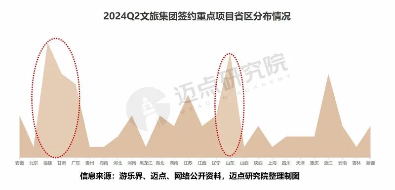 签约项目分布情况,以福建、山东、甘肃、浙江、广东、江苏6省相对集中。其中,福建、山东、甘肃3省受本季度组织举办文旅招商引资相关会议的拉动作用,文旅项目集中签约,如2024年福建省文旅经济发展大会(4月17日-19日)、2024山东省旅游高质量发展大会(4月25-26日)、甘肃省文旅产业链招商推介会(6月21日)。而浙江、广东、江苏3省则作为全国的旅游经济大省、旅游产业强省,长期以来为文旅投资热门区域。