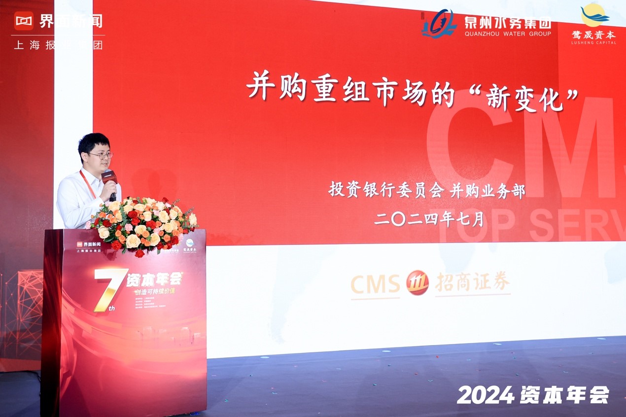 招商证券投资银行委员会并购部董事宋天邦在年会上分享了“并购重组市场的新变化”,他指出,未来高质量并购重组会更加活跃,重点行业的集群效应会更加凸显,如医药消费。与此同时,交易方式会日趋多元化,上市公司之间的整合未来可能会成为常态。对于一级市场而言,并购重组会成为一个退出的重要渠道,退市也可能会成为一个新的常态。总体而言,可以概括为并购重组市场尚未全面回暖,但积极因素不断涌现。