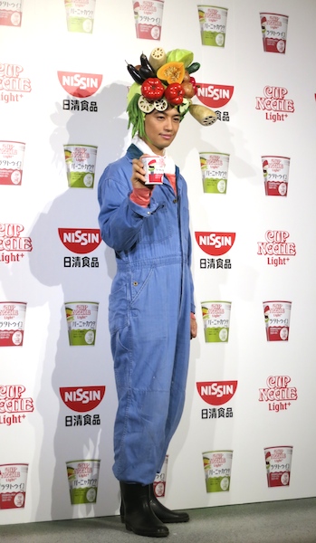 早在2015年,他们就推出过一顶神奇的蔬菜泡面帽——并把帽子扣在了男演员斋藤工头上,推广新推出的低卡产品“日清杯面Light+”(カップヌードルライトプラス)。