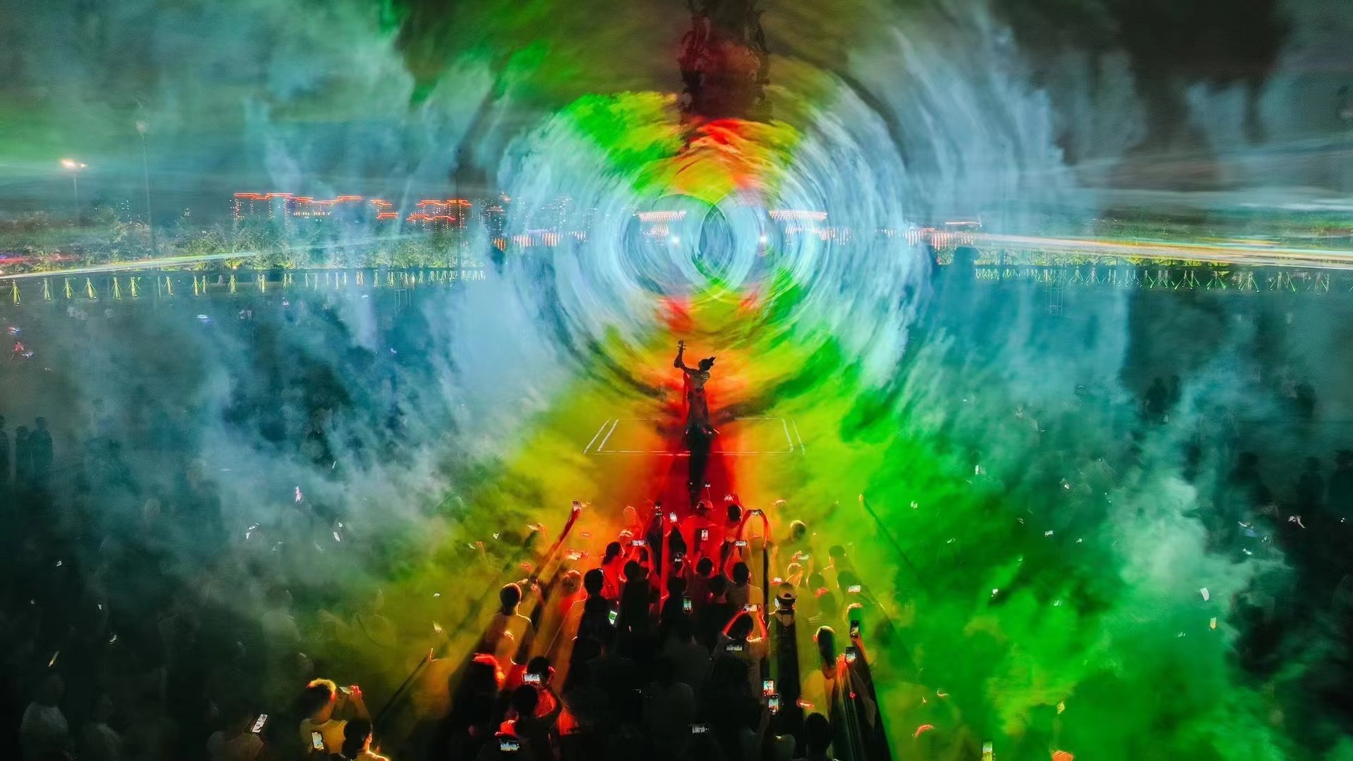 作为唐山投资控股集团、唐山文旅集团匠心打造的暑期系列文旅活动的重要一环,7月15日,“北极之光”光影艺术秀震撼上演,吸引众多游客前来打卡。“北极之光”光影艺术秀分为北极之夜、北极之海、北极之巅三个篇章,呈现北极光、孔雀舞、敦煌飞天、洛神水舞、穿越北极等主题光影效果,通过声光电三者的完美融合,以“激光+烟雾+音乐+演艺”的形式为游客带来一站式沉浸体验。演出面向公众免费开放,每天演出3场。游客们不用远赴万里之外,就可以身临其境感受极光的斑斓色彩,体验极光带来的震撼视觉冲击。