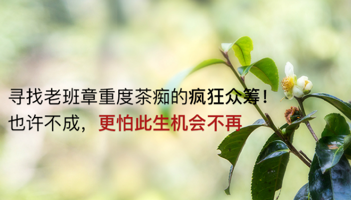 这 并非是一个商业行为,而是一次关于老班章的探索。执行过程中因各种原因数次夭折,直到今年我们痛下决心,希望能够找到一群茶痴,跟我们一起进行这次大胆而 疯狂的计划。茶语内部专业组和合伙人评价,愿意加入本次众筹的人只有两种:一种爱茶到极致,愿意为好茶和实验付出;一种有钱的大咖,对极致作品有收藏癖 好。