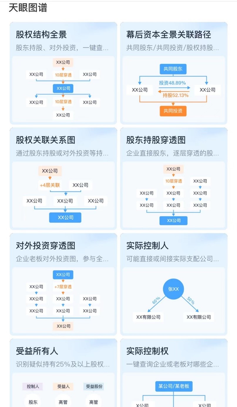 但其功能还不止于此,作为在商业查询领域首批获得央行征信资质的企业之一,天眼查将零散的商业信息聚合成在一起,让大家能够看清、看透商业社会中的复杂关系。在产品功能方面,拥有财产线索、天眼风险、深度风险、关联企业、司法案件等近百项增值服务,实现了从洞察风险到预警风险的全方位把控。