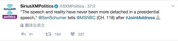 如果这就是特朗普想要达成的目的,那么从演说开始前民主党人发动抗议、演说结束后大量民主党人不愿鼓掌而提前退场来看,恐怕不能算是成功。就像民主党参议员舒默(Chuck Schumer)所说:“他说什么其实并不重要……所有事等他做出来都是不一样的了。”