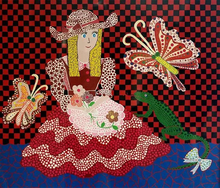 对,总要自己去看,去感受才行,才能对一个人,一件事,有真正的判断。但是世人给你贴上的标签太多了:“日本国宝级艺术家”、“圆点女王”、“前卫女王”、“精神病艺术家”、“怪婆婆”等等,都要赶上您那些无限重复的波点的个数了。今天我们不谈标签,只谈您眼睛里世界的样子,好不好。
