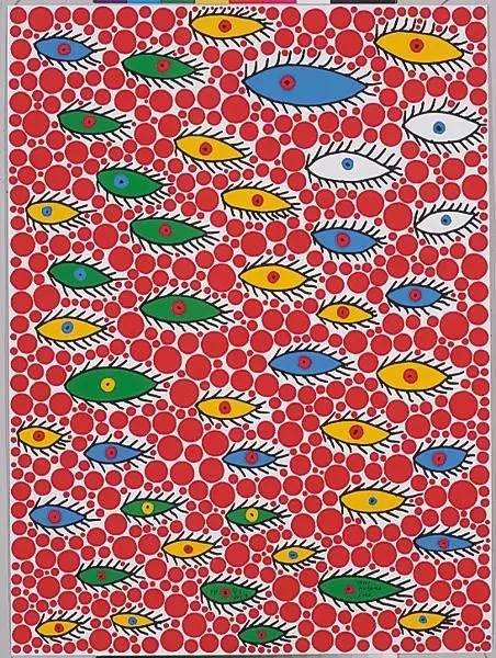 像这群空中飞翔的眼睛,它们一定会飞出这个框框的。它们周围的红色波点,胀满画面,也要溢出,或者温柔一点,缓缓流出这个边界。