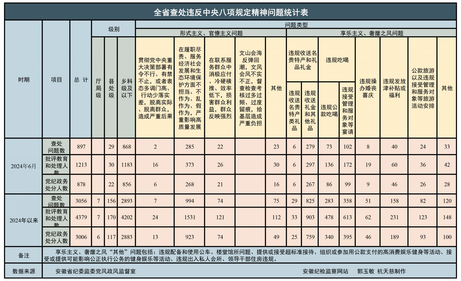 据显示,2024年上半年,全省纪检监察机关共查处违反中央八项规定精神问题3056起,批评教育和处理4379人,其中给予党纪政务处分3006人。