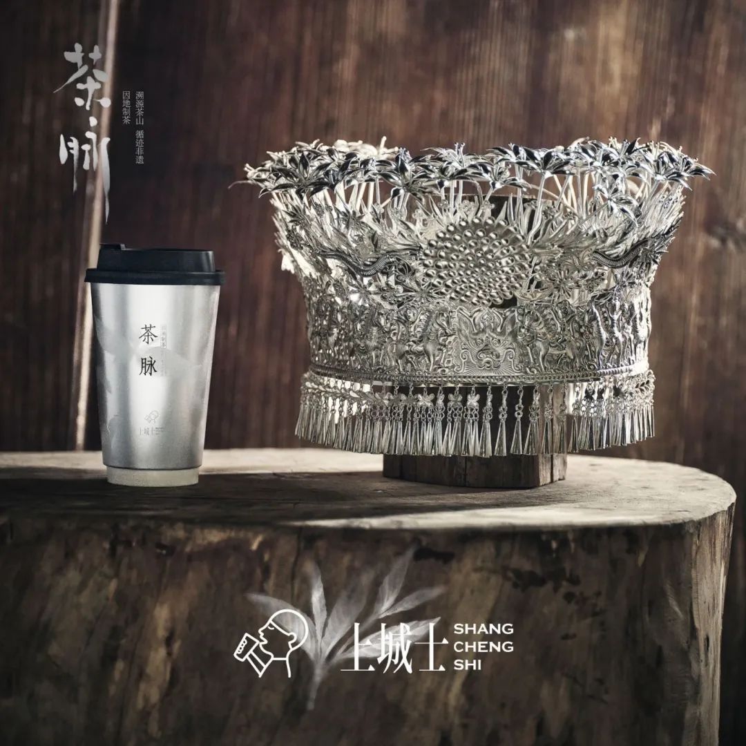 除饮品外,双方还特别推出了以苗银技艺为灵感,结合茶脉主题设计的饮品杯、纸袋茶碗等周边,全新打造「因地制茶 · 苗银」系列包装。(品牌官方)