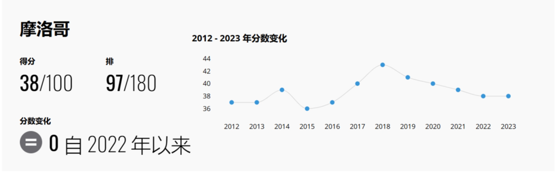 自2018年以来,摩洛哥的清廉指数持续走低。“摩洛哥政府部门官员腐败现象比较普遍,政策执行不力;且王室与政府间的关系盘根错节,企业落地摩洛哥,后期的隐性成本会比较高昂。”欣孚智库的创始人宋欣告诉霞光社。