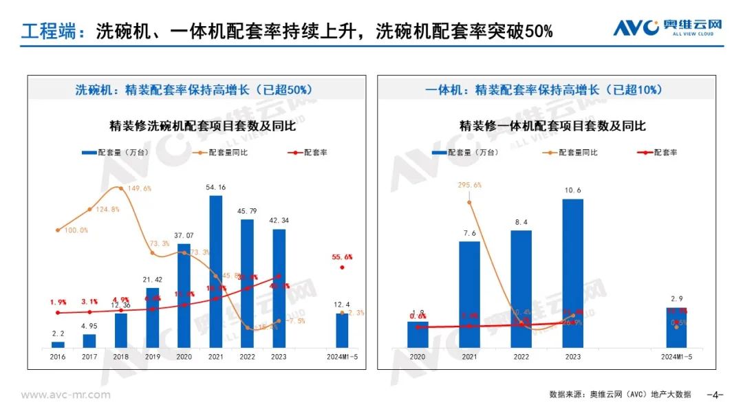 工程端表现:洗碗机、一体机配套率持续上升,洗碗机配套率突破50%