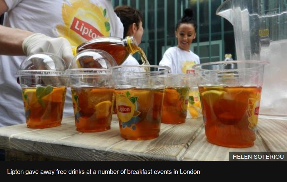 诸如这样的营销在其他大品牌也很常见,其中比较成功的还有就是立顿红茶的案例,立顿也曾在伦敦街头的“早餐活动”中为人们提供免费的茶饮料。