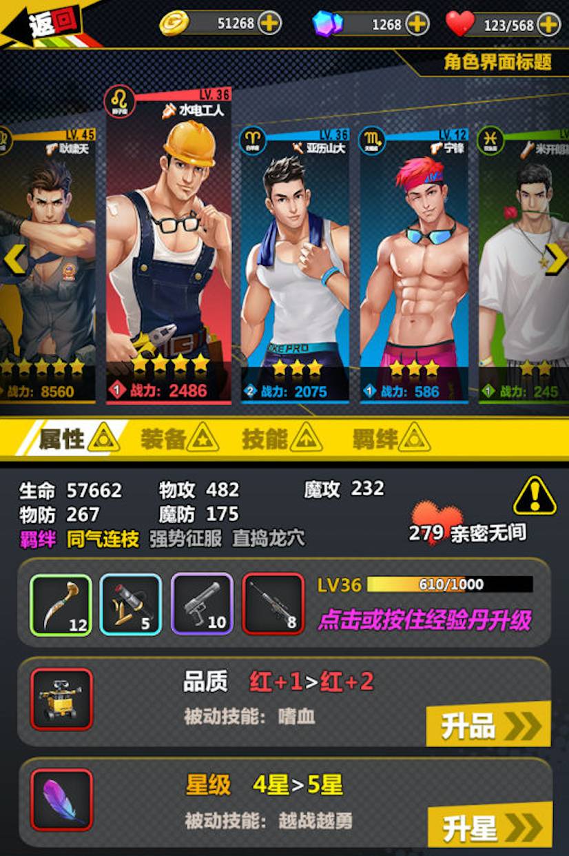 其实星引力的美术团队最初也有点接受无能。但很快,通过对同志群体的深入“走转改”,他们也设计出了如下肌肉男大聚会。(真的不是很懂你们同志的审美……)